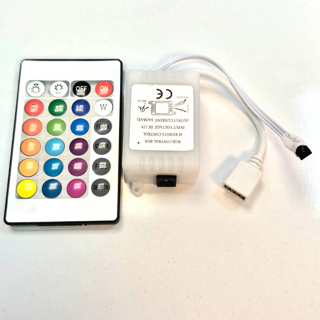 ریموت IR دارد که با نگه داشتن به سمت چشمی کنترلر کار می کند .