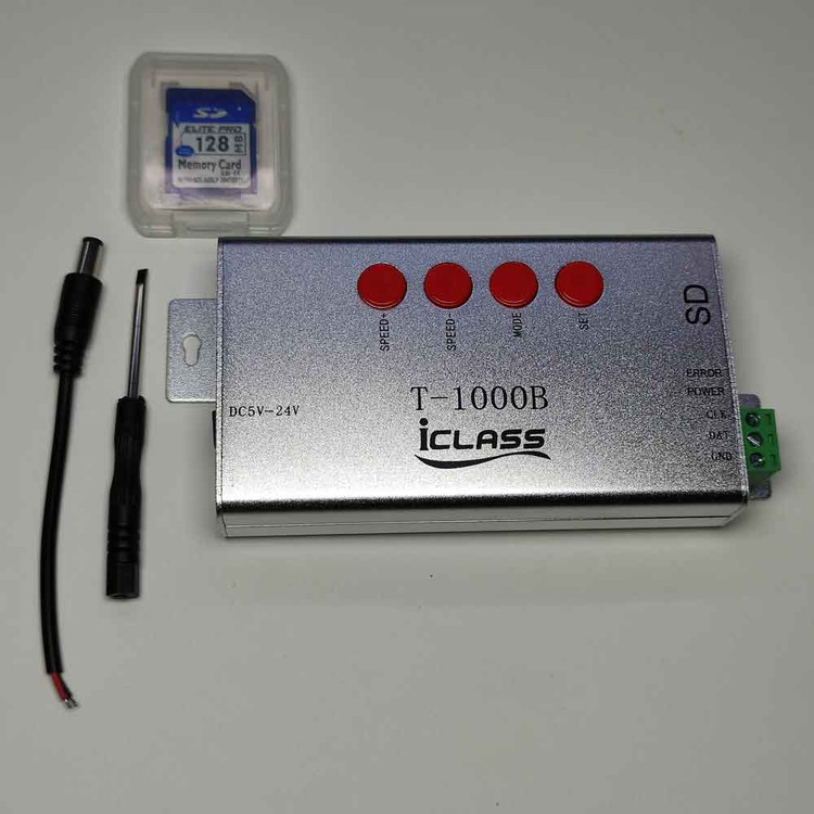 کنترلر T1000B دارای یک پورت دیتای خروجی بوده و قابلیت کنترل ۲۰۴۸ پیکسل را دارد ، کنترلر تعداد زیادی از (IC) های مانند : WS2811, WS2812 , SK6812 ,UCS1903 و … پیشتیبانی می کند .
