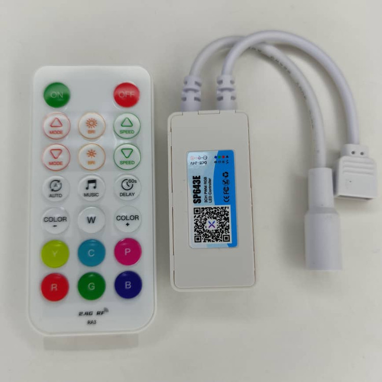 کنترلر حرفه ای SP643E بلوتوثی با ریموت 20 کلید RF و نرم افزار اندروید و IOS که با بلوتوث به نرم افزار متصل می شود یک کنترلر ال ای دی هوشمند برای ماژول و نوار LED آر جی بی است.