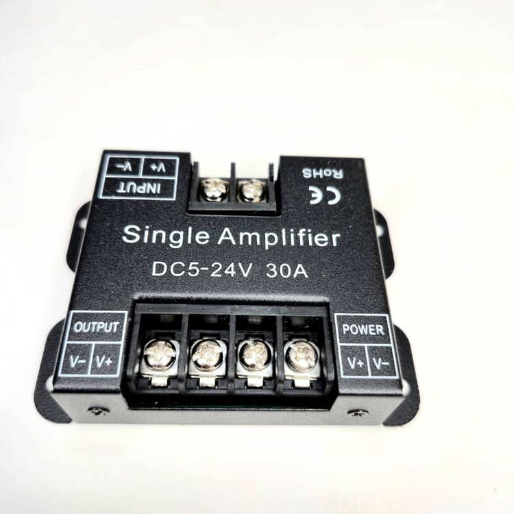 در زمان استفاده از کنترلر های ال ای دی تک کانال یا سنسور های تاچ یا حرکتی یا انواع دیمر فلاشر های دی سی بدلیل محدودیت جریان آمپری که می توان مستقیم از انها گرفت ، می توانید از امپلی فایر جهت تقویت ان استفاده کنید .