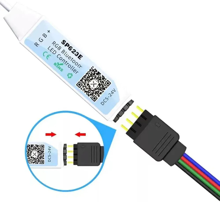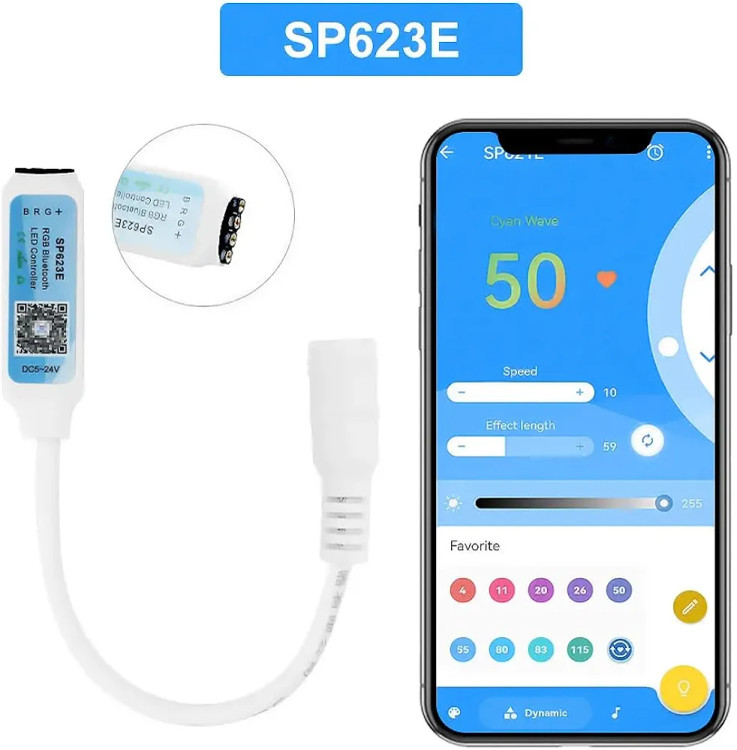 کنترلر حرفه ای SP623e بلوتوثی با نرم افزار اندروید و IOS که با بلوتوث به نرم افزار متصل می شود یک کنترلر ال ای دی هوشمند برای ماژول و نوار LED آر جی بی است.