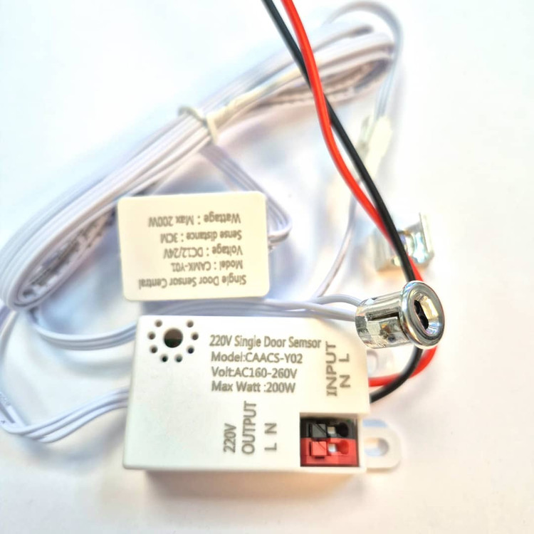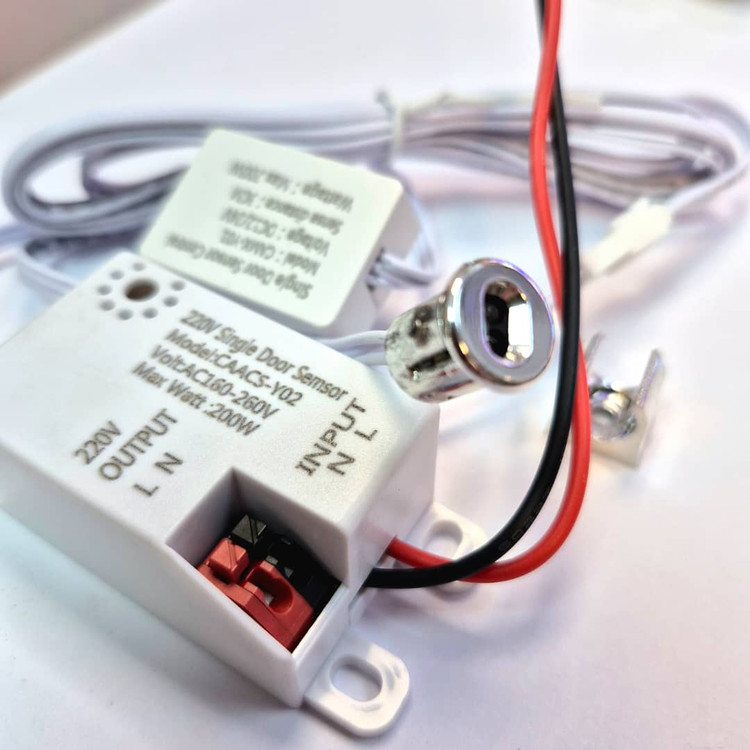 چشمی سنسور نزدیک درب کمد یا کابینت نصب میشود و تا زمانیکه درب بسته باشد چراغ ها خاموش هستند و به محض باز شدن درب(فاصله پیدا کردن بین درب و سنسور) ال ای دی روشن میشود.