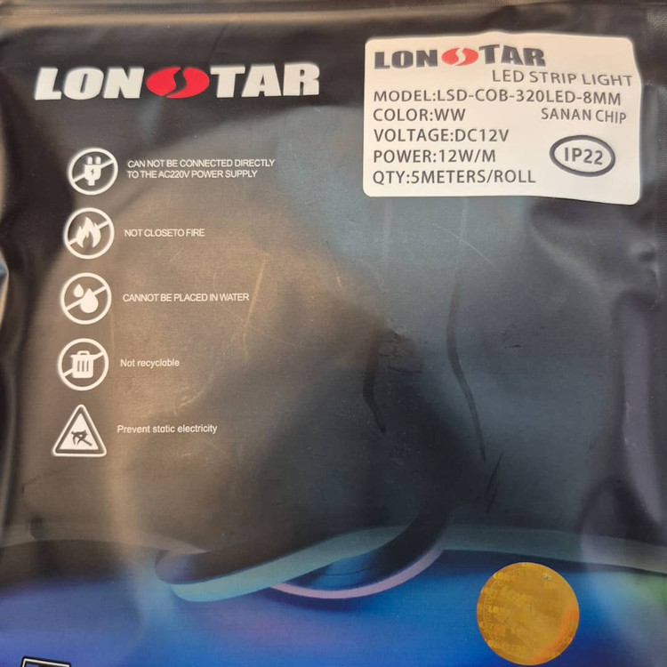 ریسه نواری cob آفتابی تراکم ۳۲۰ برند لانستار ۱۲ ولت حلقه ۵متری