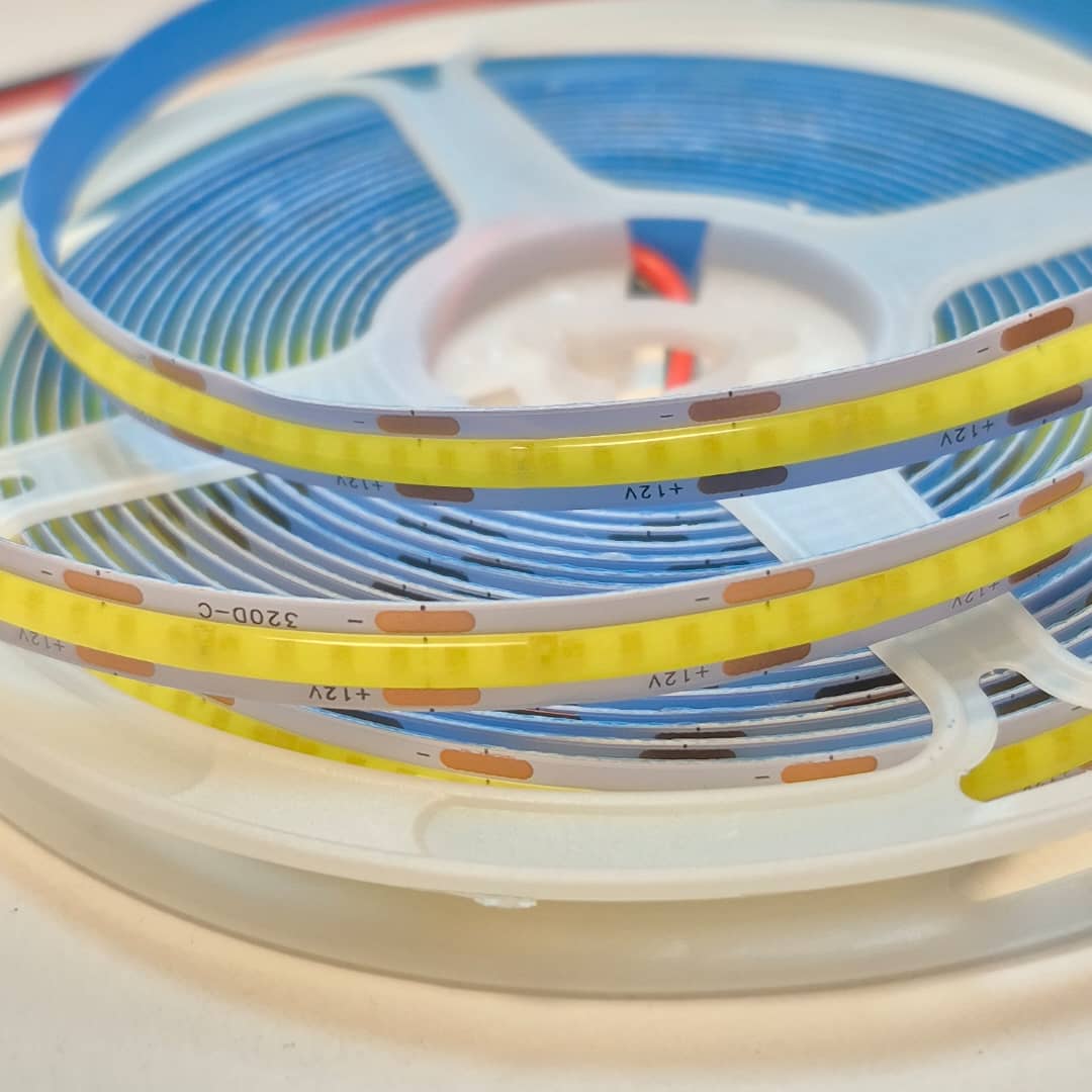 ریسه نواری cob سفید مهتابی تراکم ۳۲۰ برند لانستار ۱۲ ولت حلقه ۵متری