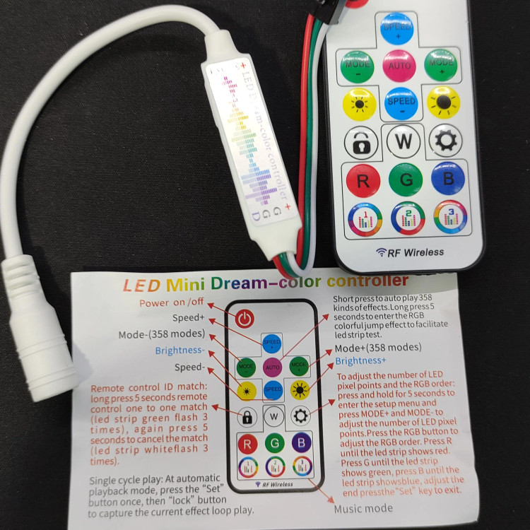 کنترلر موزیکال دیجیتال مخصوص ال ای دی های برنامه پذیر ۵ تا ۲۴ ولت ریموت RF ۳۵۸ افکت آماده ۱۲ مدل افکت موزیکال