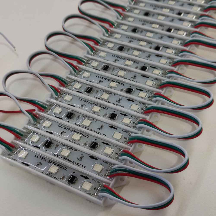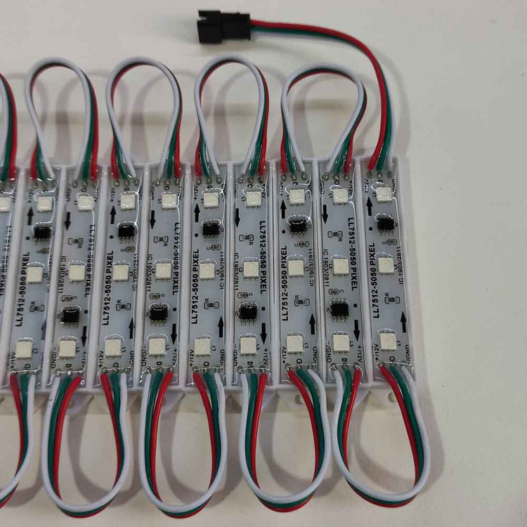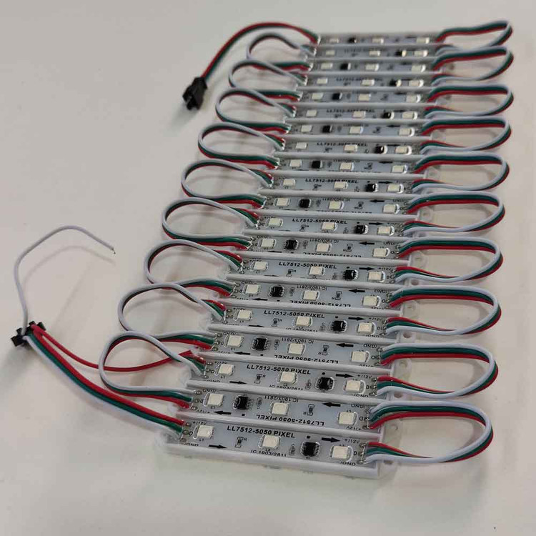 ولتاژ این پیکسل ها ۱۲ ولت DC می باشد و تعداد در هر پک ۲۰ عدد است و پشت انها چسب دوطرفه دارد .